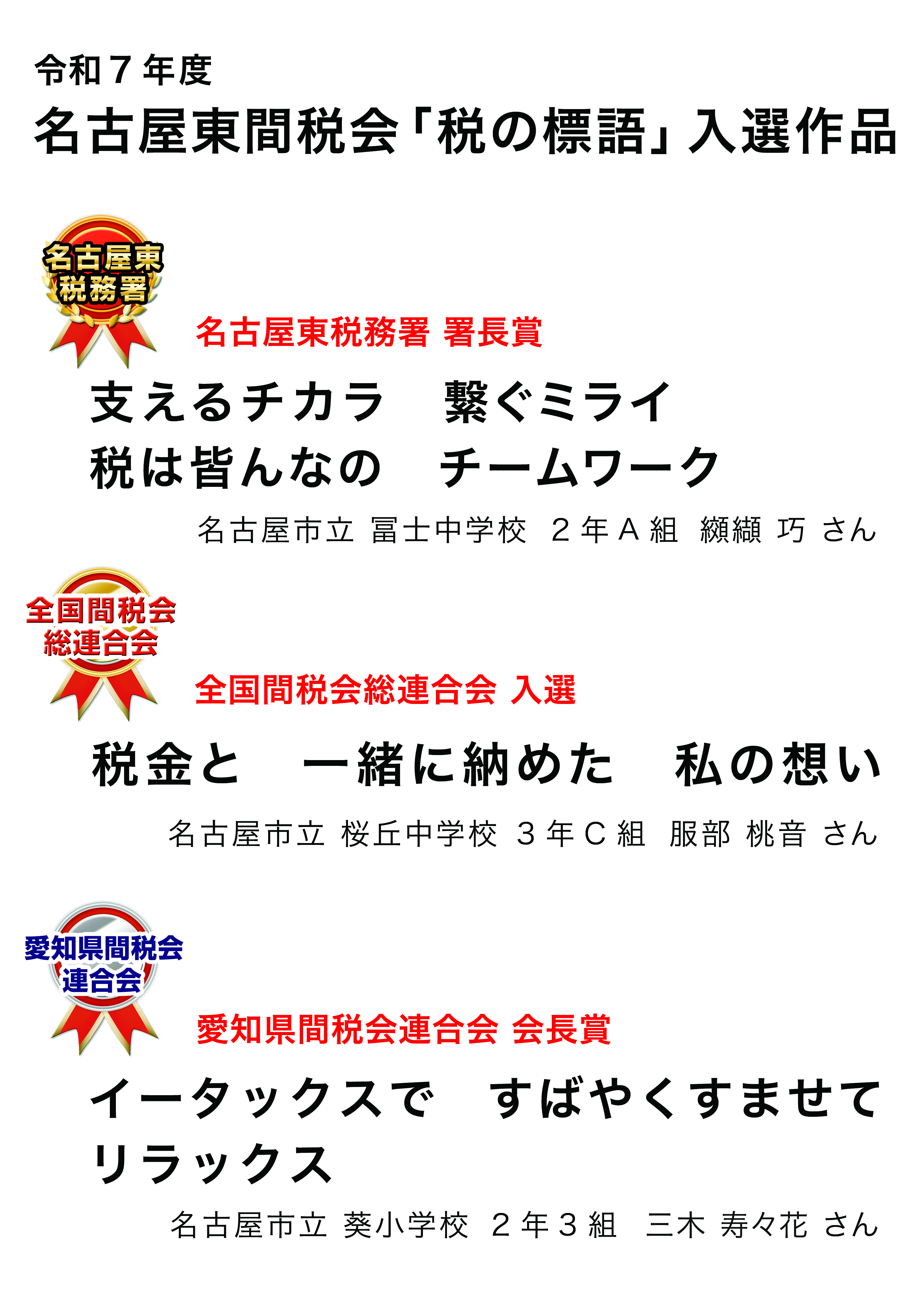 令和7年度 名古屋東間税会「税の標語」入選作品