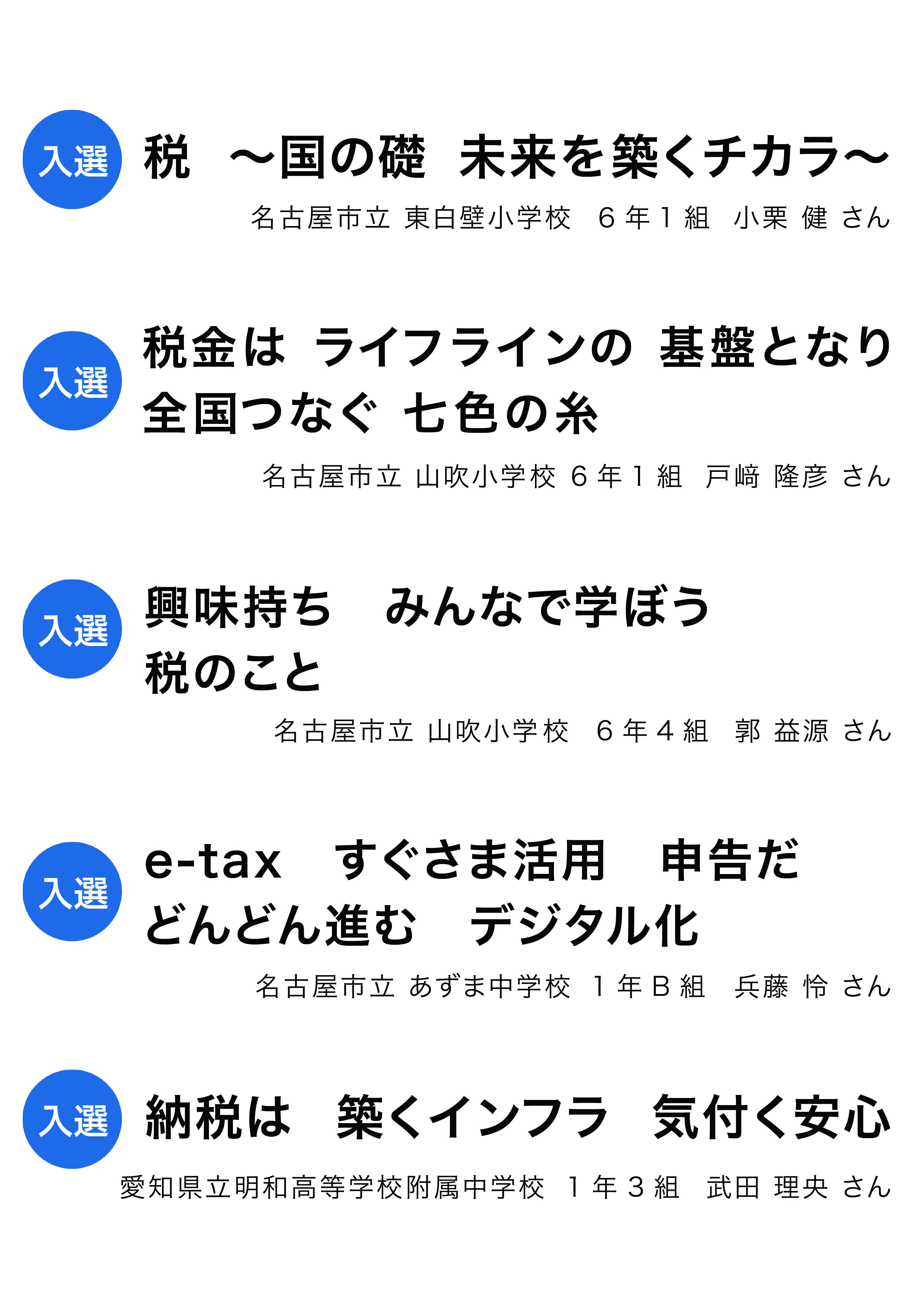 令和5年度 名古屋東間税会「税の標語」入選作品